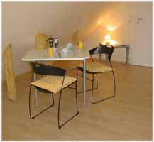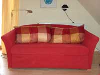 In July 2003 he apartment has been awarded by the German tourism association (DTV) with four of five possible stars.Satellite-TV/Radio, HiFi, DVD-/CD-Player, ISDN-telephone, internet connection ISDN/T-DSL wireles LAN. High quality bed clothing. Mattress approved for slipping disc patients, hardness 2. French bed 160 x 200 cm. Dining table. Terrace door with mosquito screen. Kitchen 2 m, with dishwasher, microwave, two cooking places, refrigerator. Parquet laminate flooring, pleated curtains with reflection coating. Three-piece-suite with coffee table, studio couch expandable, size 140 x 200 cm. Bathroom with WC, bidet, 90 cm round shower, floor heating, towel heating, roof window, hair-dryer, enlargement mirror. Parking lots in front of the house. Dogs are welcome.